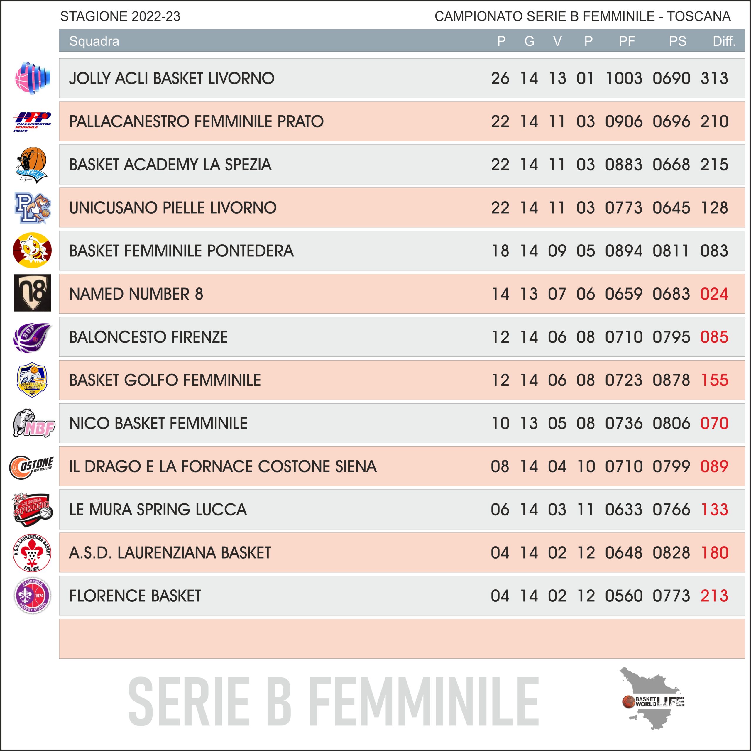 La Classifica di serie B femminile