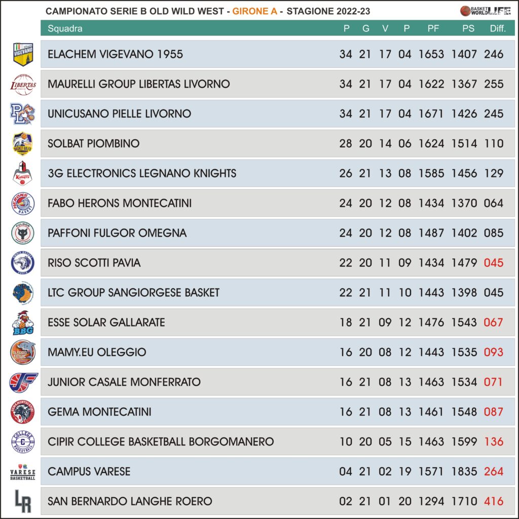 Junior Casale Monferrato-Unicusano Pielle Livorno 73-83 Grazie in particolare ad un parziale di 27-42 nei due quarti centrali, la Pielle Livorno (Federico Loschi 16-Giovanni Lenti 16+10r) espugna con autorità il parquet di Casale Monferrato (Manuel Saladini 20) e resta così in testa alla classifica insieme a Vigevano e Libertas Livorno mentre i piemontesi vengono agganciati al quartultimo posto dalla Gema Montecatini.