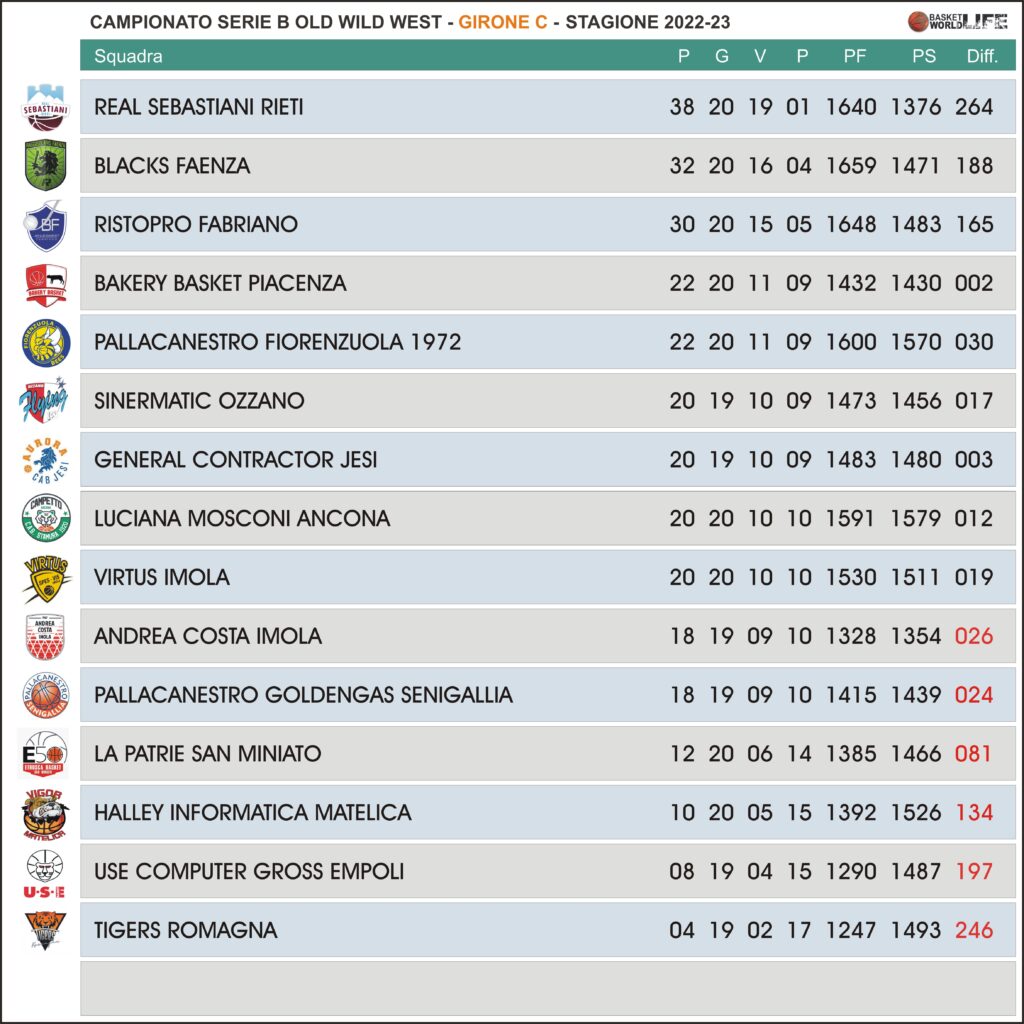 Virtus Imola-La Patrie San Miniato 75-65 La Virtus Imola (Borislav Mladenov 20+14r) conquista un importante e meritato successo, che le permette di rientrare in piena corsa per la quarta posizione, piegando nel finale la resistenza di una San Miniato (Daniel Ohenhen 14) che resta ancora senza affermazioni in trasferta e che mantiene comunque due punti di vantaggio su Matelica, terzultima in classifica.