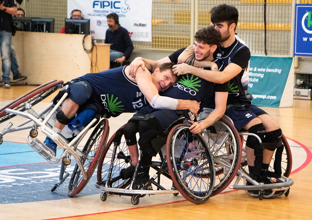 E’ la Deco Metalferro Amicacci Abruzzo la squadra Campione d’Italia nella stagione 2022/2023 di Pallacanestro in Carrozzina. Gli abruzzesi hanno vinto a Meda nel pomeriggio di sabato 22 aprile anche gara 2 nelle finali contro i detentori della UnipolSai Briantea84 Cantù, chiudendo quindi la serie 2 a 0 e fregiandosi del primo titolo tricolore della propria quarantennale storia.