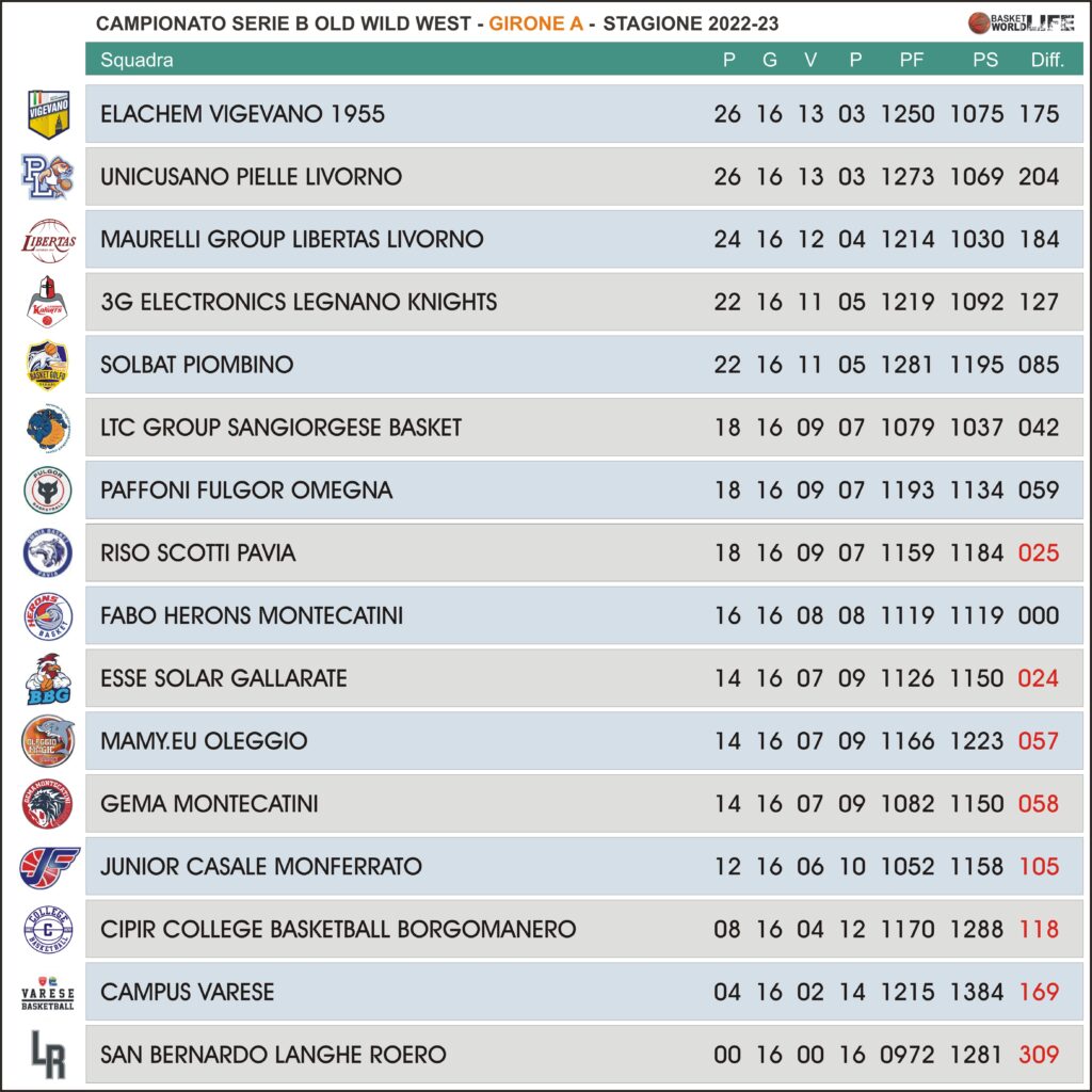 Unicusano Pielle Livorno-Gema Montecatini 66-49 Grande equilibrio per tre quarti al PalaMacchia con la Gema Montecatini (Marco Laganà 21+12r con 7/19 dal campo) che riesce a mettere in grande difficoltà i padroni di casa della Pielle (Giovanni Lenti 14+12r) i quali però negli ultimi dieci minuti, con un parziale di 23-7, portano nettamente la gara dalla loro parte tornando al successo interno dopo le ultime due delusioni di fronte ai propri tifosi e restando in testa alla classifica appaiata adesso con la sola Vigevano anche se al secondo posto a causa del ko nello scontro diretto.